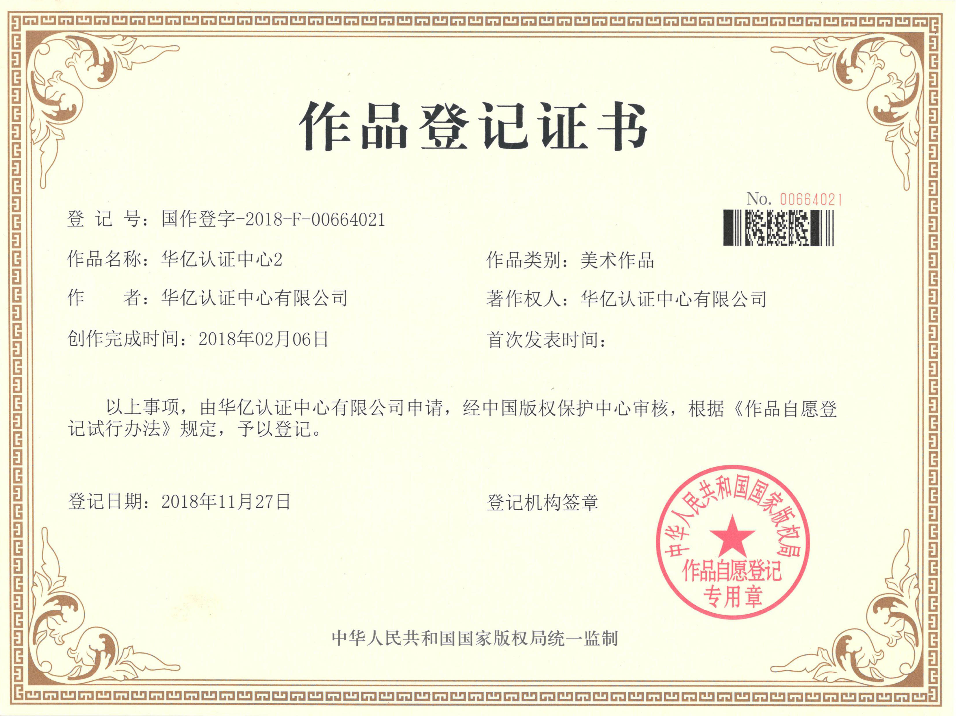 华亿商标注册证