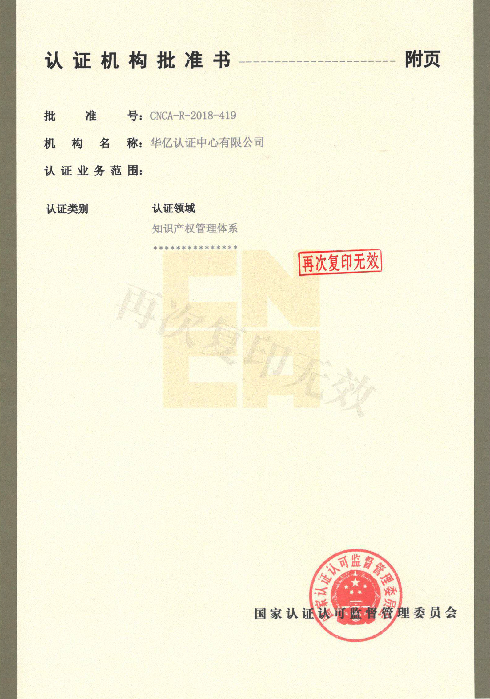 认证机构批准书附件-2